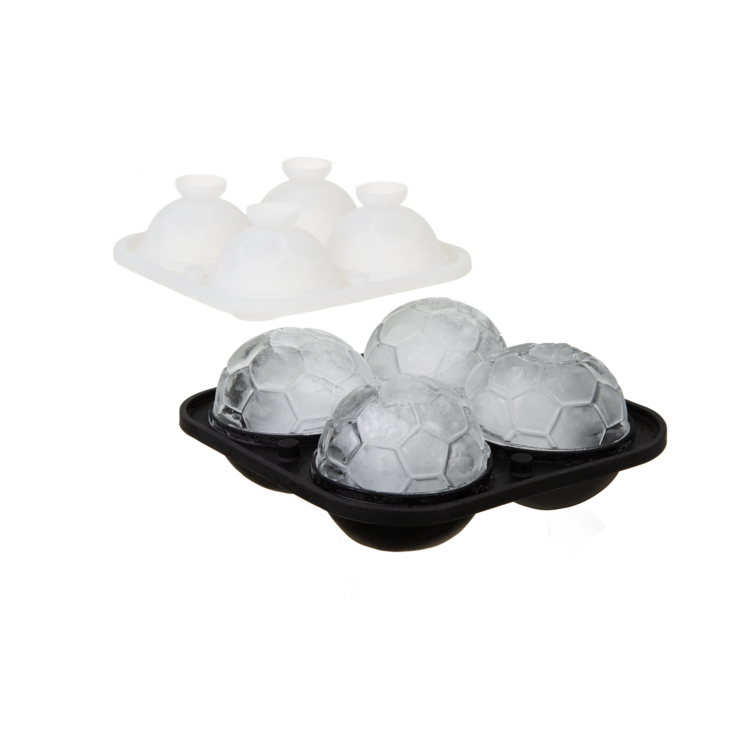 Bicchiere per tifosi con un dettaglio di pallone da calcio e uno stampo per ghiaccio a forma di palloni.